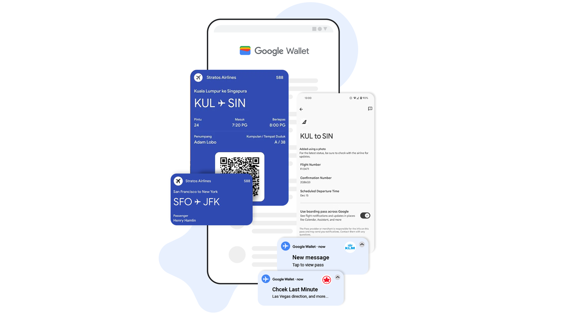 يمكنك تغيير رحلة العميل بأكملها لأي رحلة أو فعالية. يمكنك السماح لعملائك بإضافة كل شيء والوصول إليه، بدءًا من بطاقات صعود الطائرة إلى تذاكر الحفلات الموسيقية، في مكان آمن واحد باستخدام "محفظة Google".