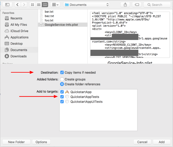 GoogleService-Info.plist文件,然后选择该文件。 点击选项按钮。